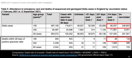 Today in the UK, 66.7 percent fully vaccinated, but 80 percent of the deaths are fully vaccinated. Whoops.