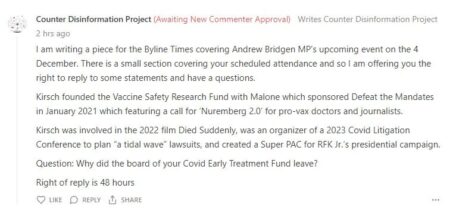 I documented the story behind the board mass resignation in an earlier article. The whole article is a great read, or you can just read that one section. If you can find a factual error in what I wrote in the TrialSiteNews article, I’d be grateful if you’d point that out and I’ll correct it. None of the advisory board people were able to point out an error to this day.