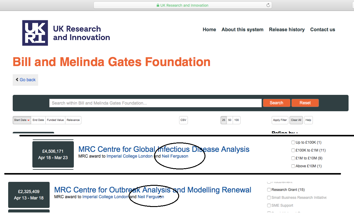 Bill and Melinda Gates Foundation page at the website UK Research and Innovation, funding Professor Neil Ferguson