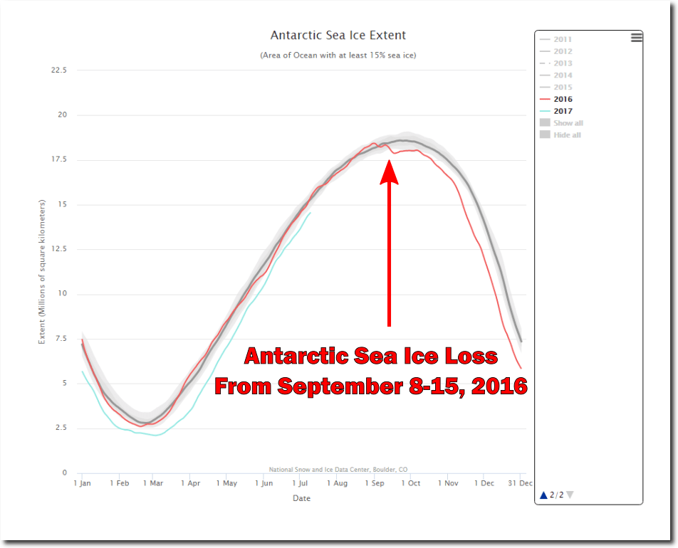 Stormy winter weather during the first two weeks of September 2016 broke up some ice, and it hasn’t all grown back yet.