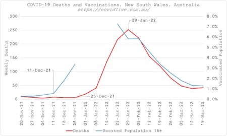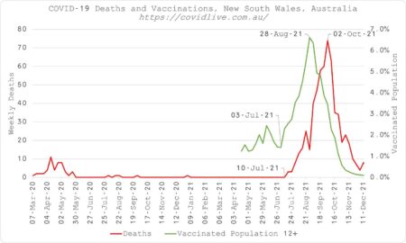 No-one really died with/from/of COVID in NSW until 10-Jul-21, one week after the mass mRNA experiment began in earnest. Deaths peaked on 02-Oct-21, one month after the experiment peaked. The similarity in shape of the two distributions is quite apparent with both deaths and jabs ending around the same time at the end of Nov ‘21.