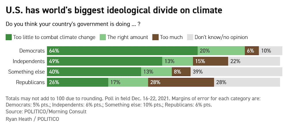 And more recent polls show the same. In the 02/08/2022 Politico article, “The world is on fire and our leaders are failing, poll finds,” we see the following survey results: