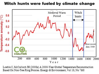 The first extensive European witch hunts coincided with plunging temperatures as the continent transitioned away from the beneficial warmth of the Medieval Warm Period (850 to 1250 AD).